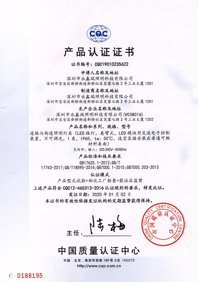永鑫瑞秉承高效、綠色、環保的理念,是新時代節能燈具的先鋒。并通過了國內外多項權威認證,如:ISO9001, CCC,CE,ROHS、防爆認證等。  產品廣泛應用于:戶外照明、工業照明、體育球場照明、隧道照明、道路照明以及特殊防爆場所等,我們的產品遠銷于北美、歐洲以及其它如:巴西、日本、東南亞等國家,深受各國客商的認同與青睞。  永鑫瑞一直堅持以品質第一、價格合理、交貨準時、客戶滿意的原則,以市場為導向,以真誠服務為宗旨,嚴格按照國際標準來要求自己,不斷提升產品質量以及全面貼心的售后服務來贏得國內外客戶的需求,為全球節能減排、綠色環保照明產業做出卓越的貢獻。 永鑫瑞照明真誠的期待與您共創輝煌。